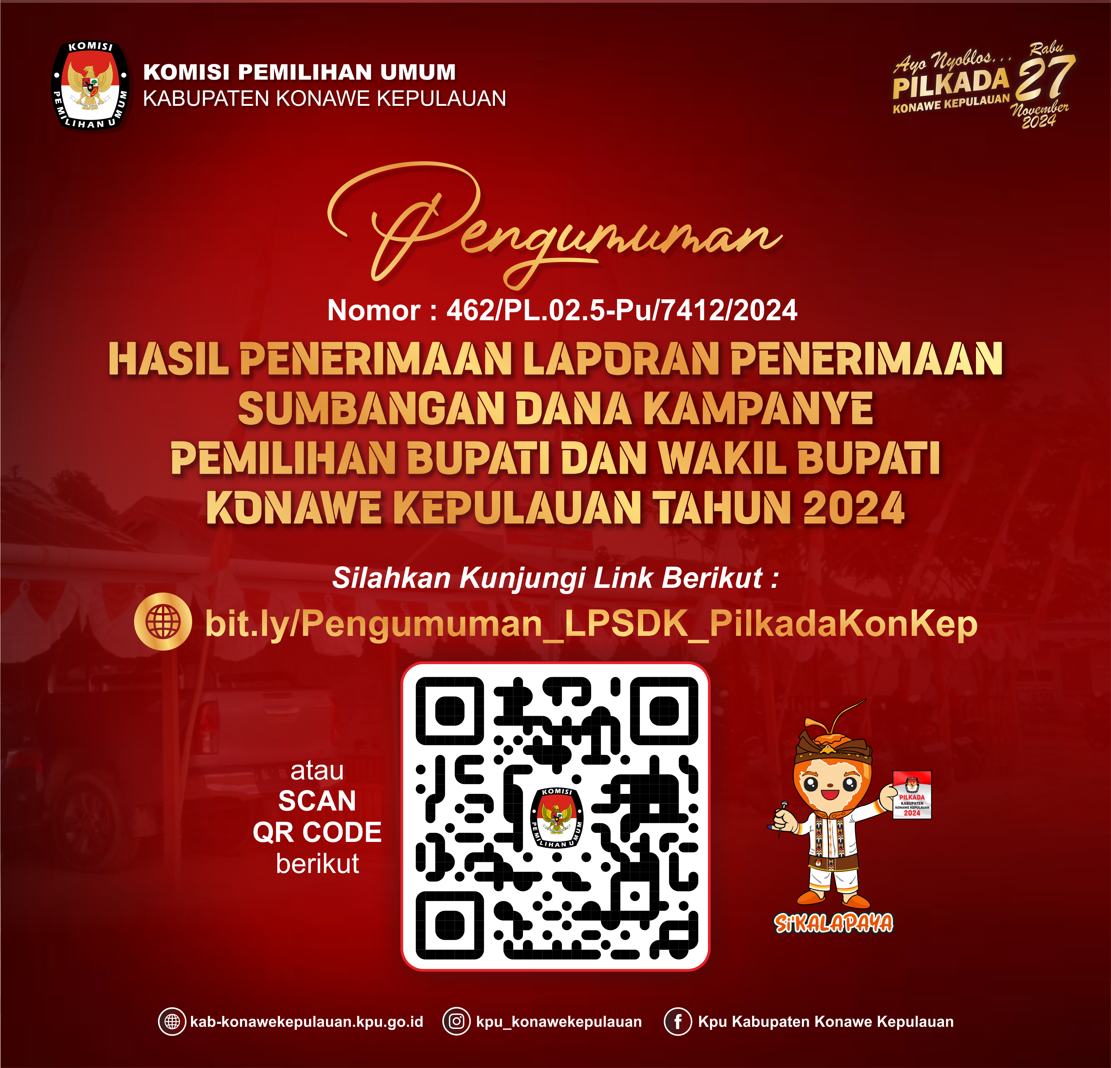 Berikut Pengumuman Tentang Hasil Penerimaan Laporan Penerimaan Sumbangan Dana Kampanye Pemilihan Bupati dan Wakil Bupati Konawe Kepulauan Tahun 2024