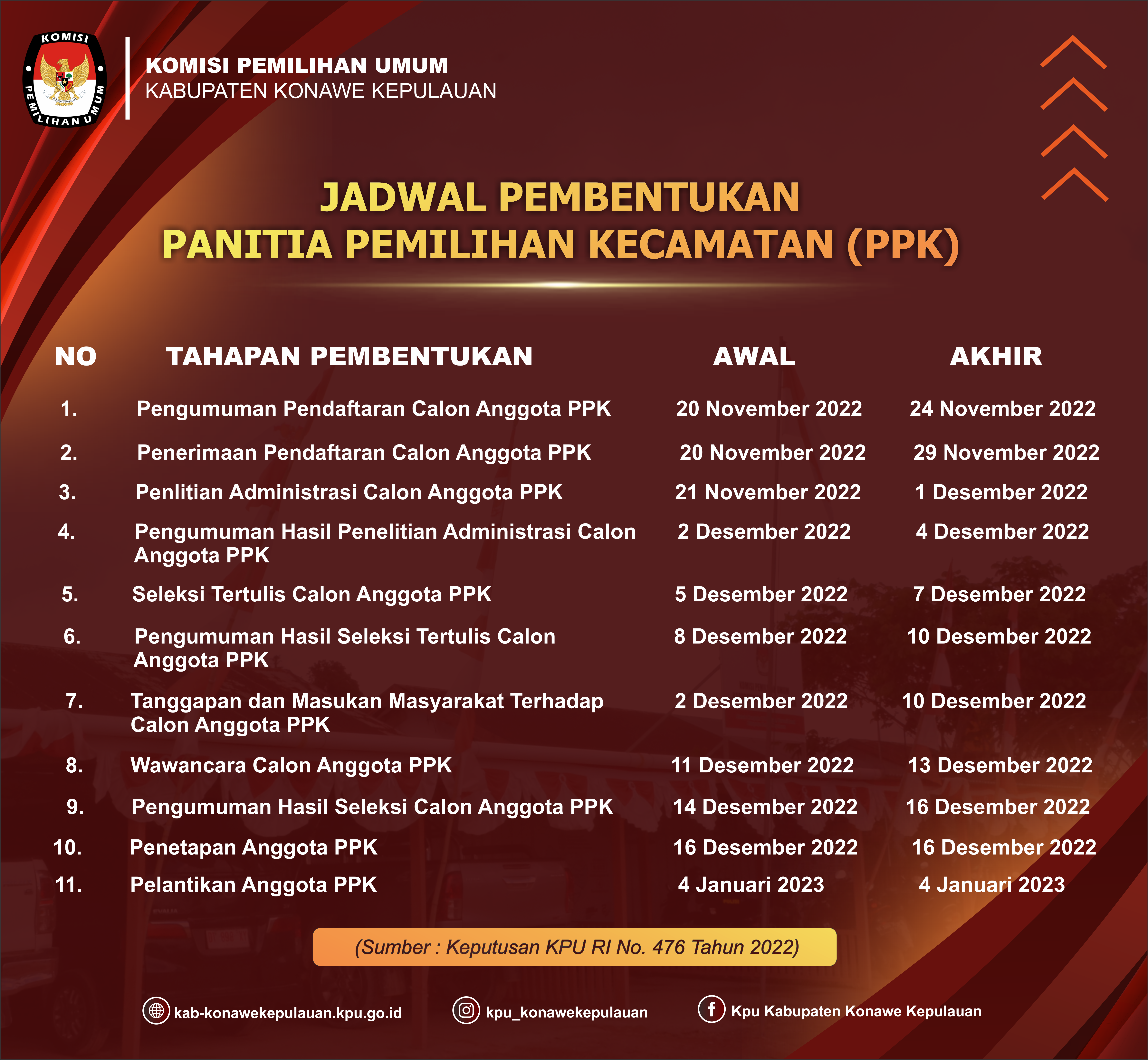 JADWAL PEMBENTUKAN PANITIA PEMILIHAN KECAMATAN (PPK) UNTUK PEMILIHAN UMUM TAHUN 2024