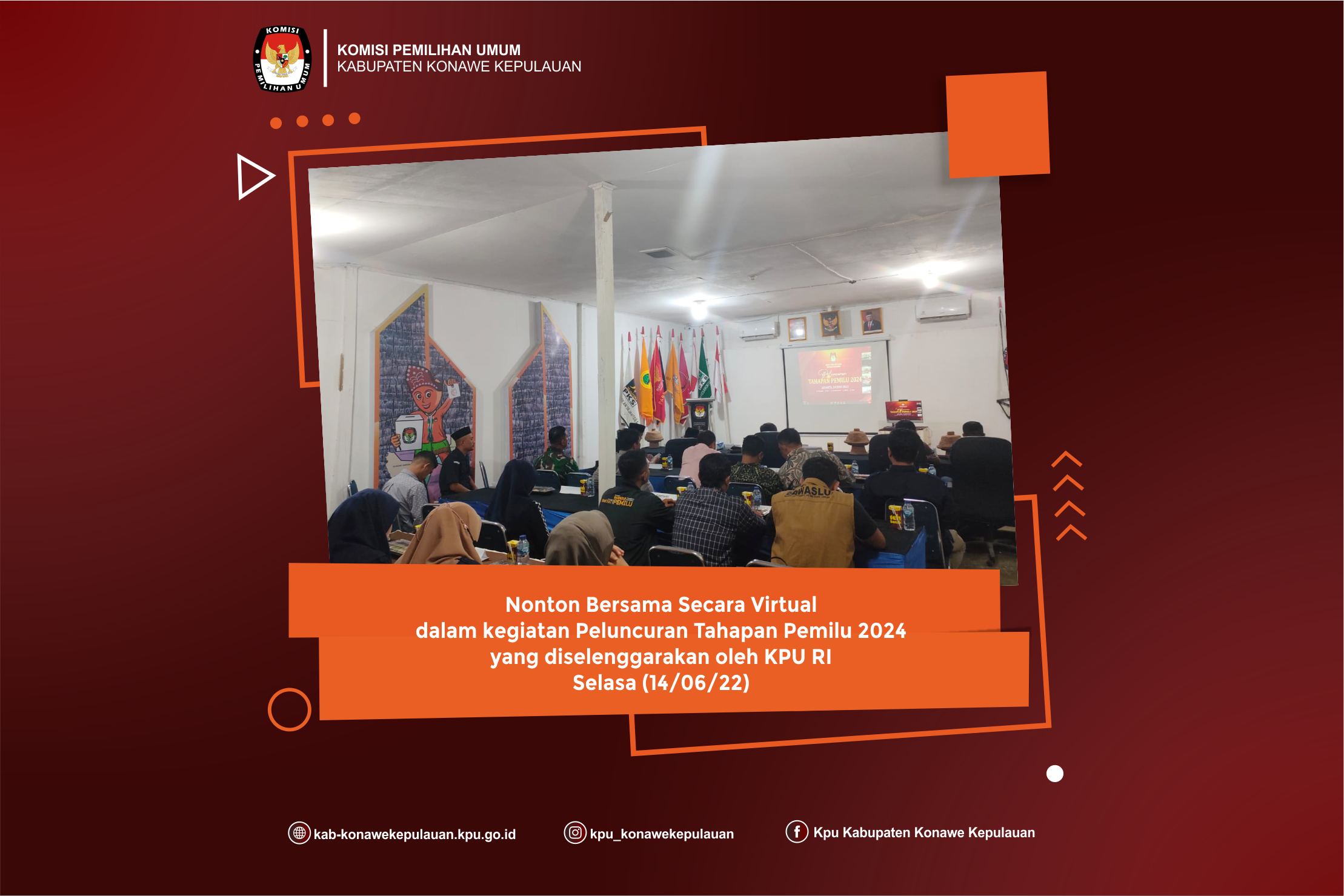 KonaweKepulauanKPU-Komisi Pemilihan Umum Kabupaten Konawe Kepulauan menggelar Nonton Bersama Peluncuran Tahapan Pemilu Tahun 2024 bertempat di Aula KPU Kabupaten Konawe Kepulauan pada hari Selasa (14/06)