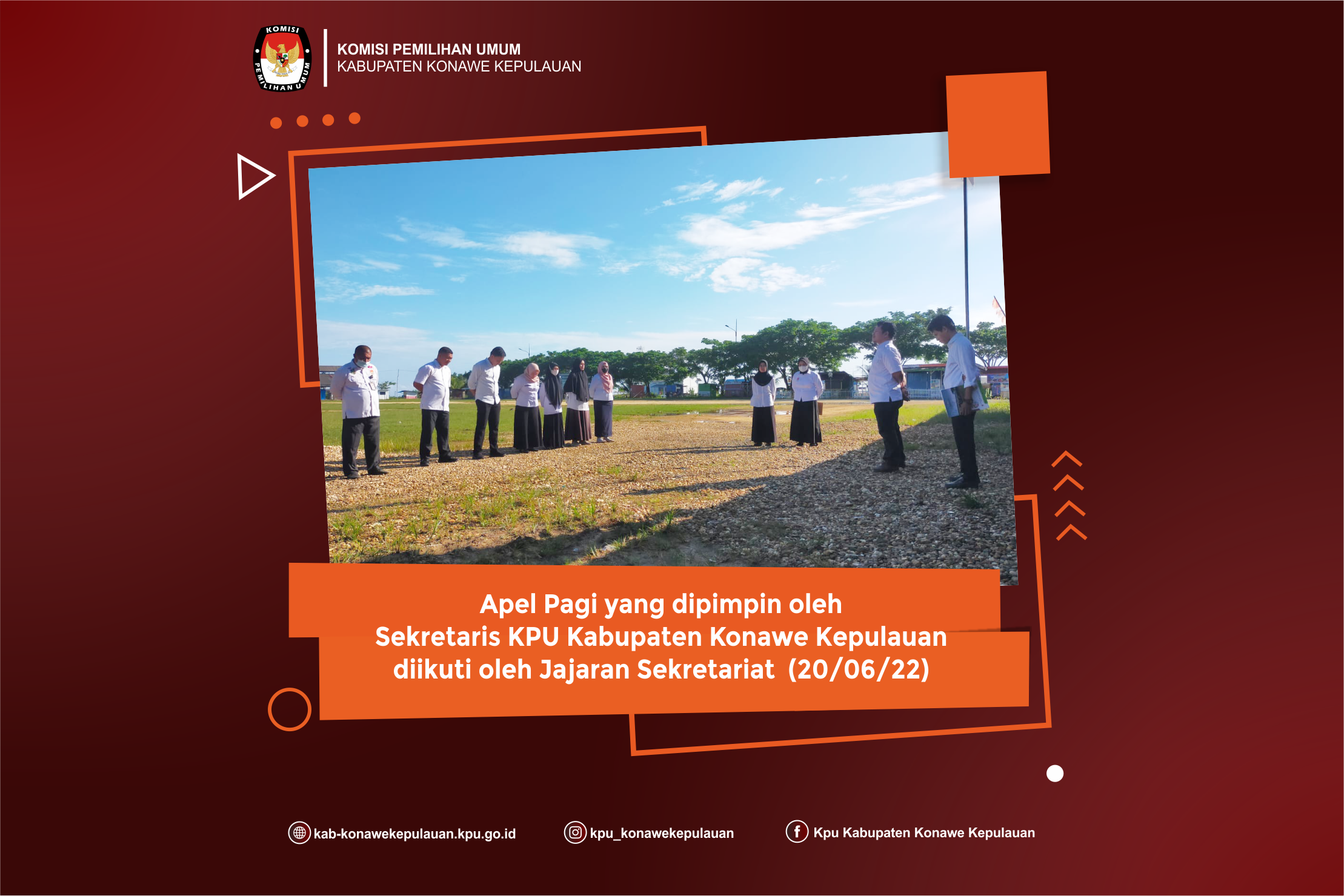 KonaweKepulauanKPU-Komisi Pemilihan Umum Kabupaten Konawe Kepulauan Melaksanakan Apel pagi rutin yang dipimpin oleh Sekretaris KPU Kabupaten Konawe Kepulauan diikuti oleh Jajaran Sekretariat KPU Kabupaten Konawe Kepulauan. Senin, (20/06/22)