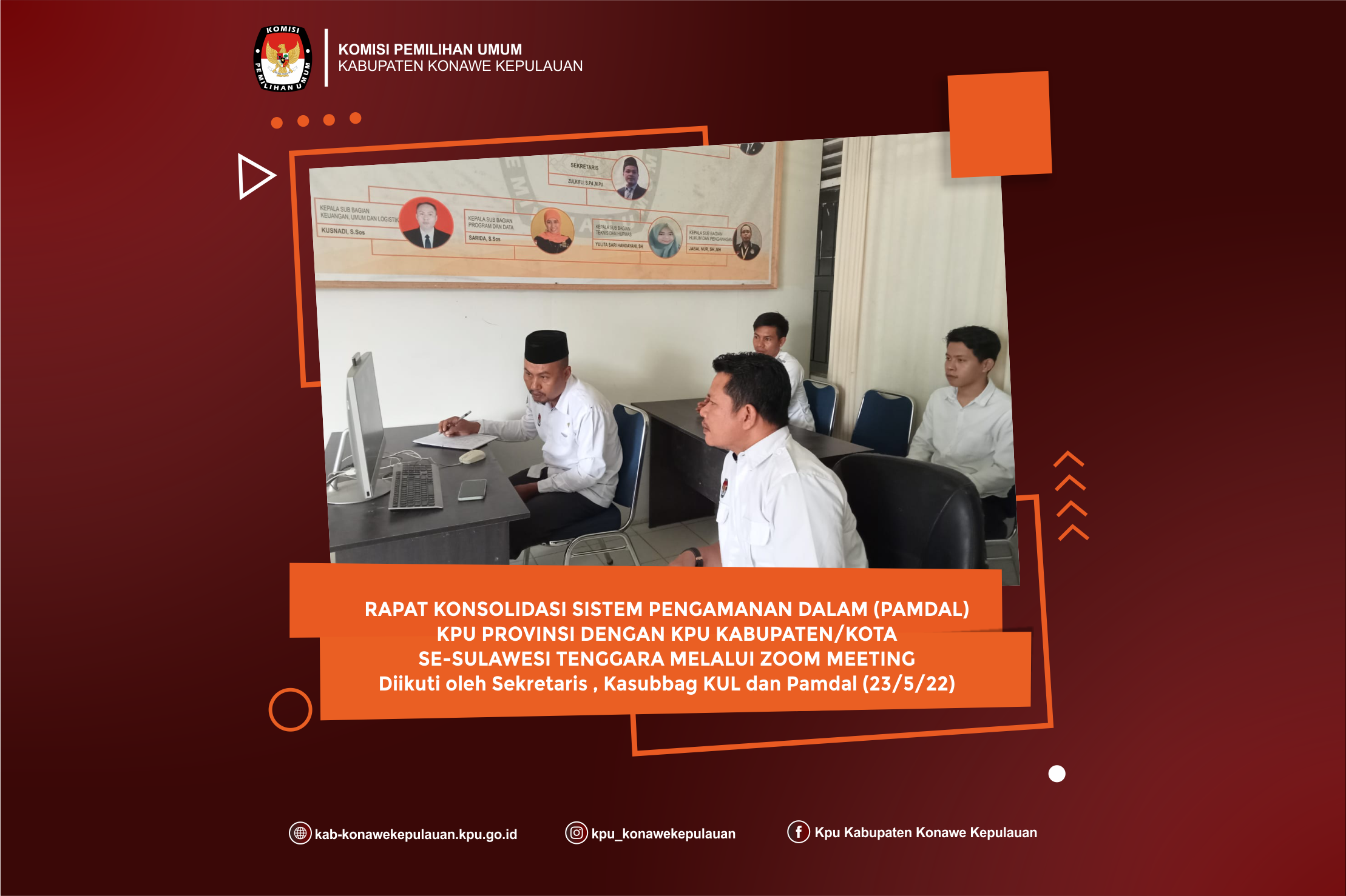 KonaweKepulauanKPU-Komisi Pemilihan Umum Kabupaten Konawe Kepulauan Mengikuti Rapat Konsolidasi Sistem Pengaman Dalam (Pamdal) Melalui Zoom Meeting Bersama KPU Provinsi dan KPU Kabupaten/Kota se-Sulawesi Tenggara [23/5/22]