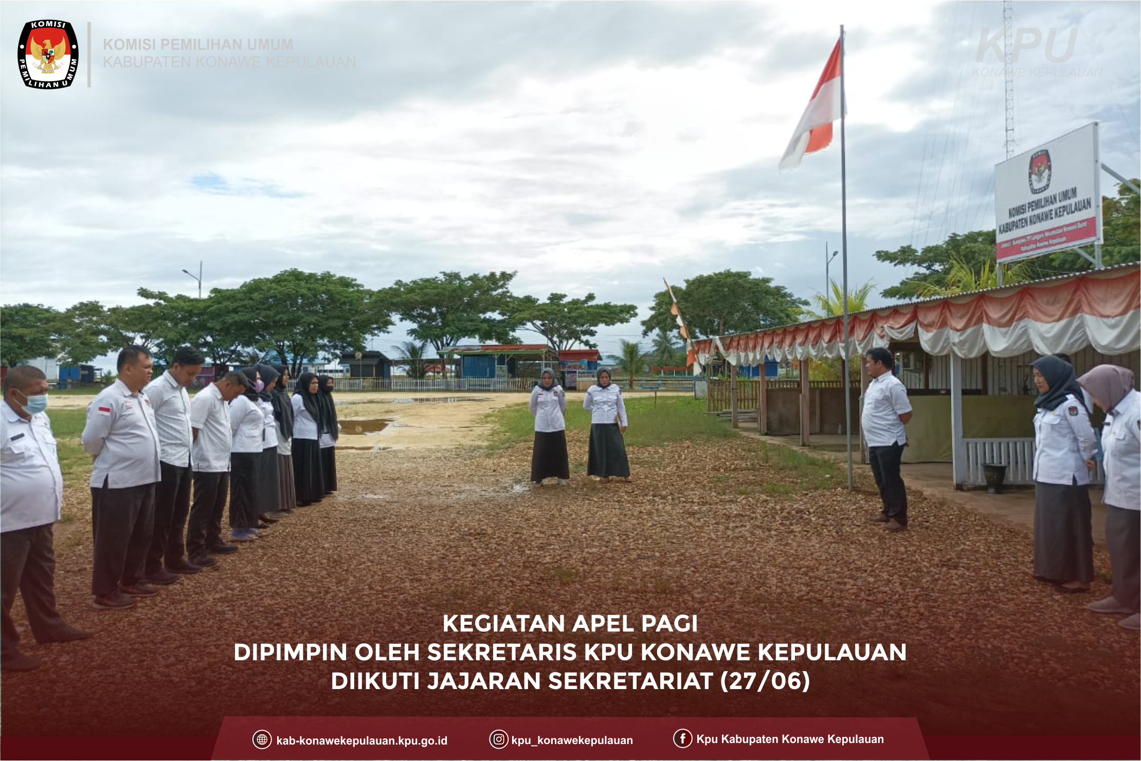 KonaweKepulauanKPU-Komisi Pemilihan Umum Kabupaten Konawe Kepulauan Melaksanakan Apel pagi rutin yang dipimpin oleh sekretaris dan diikuti oleh Jajaran Sekretariat KPU Kabupaten Konawe Kepulauan. Senin, (27/06/22) [s.adm]