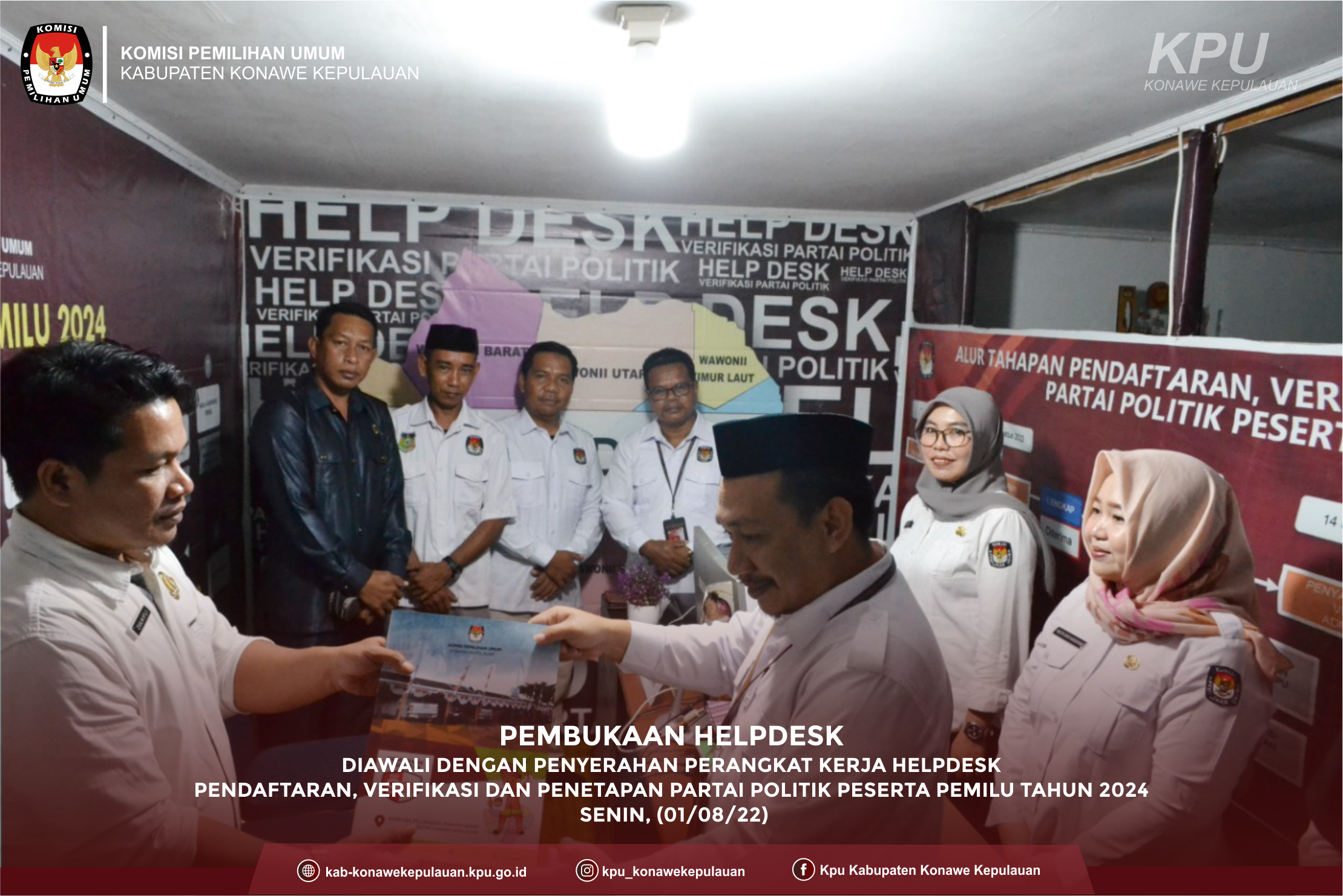 KonaweKepulauanKPU-Komisi Pemilihan Umum Kabupaten Konawe Kepulauan Membuka Helpdesk Pendaftaran, Verifikasi dan Penetapan Partai Politik Peserta Pemilu Tahun 2024 yang dilakukan secara serentak oleh Komisi Pemilihan Umum Republik Indonesia (01/08/22)