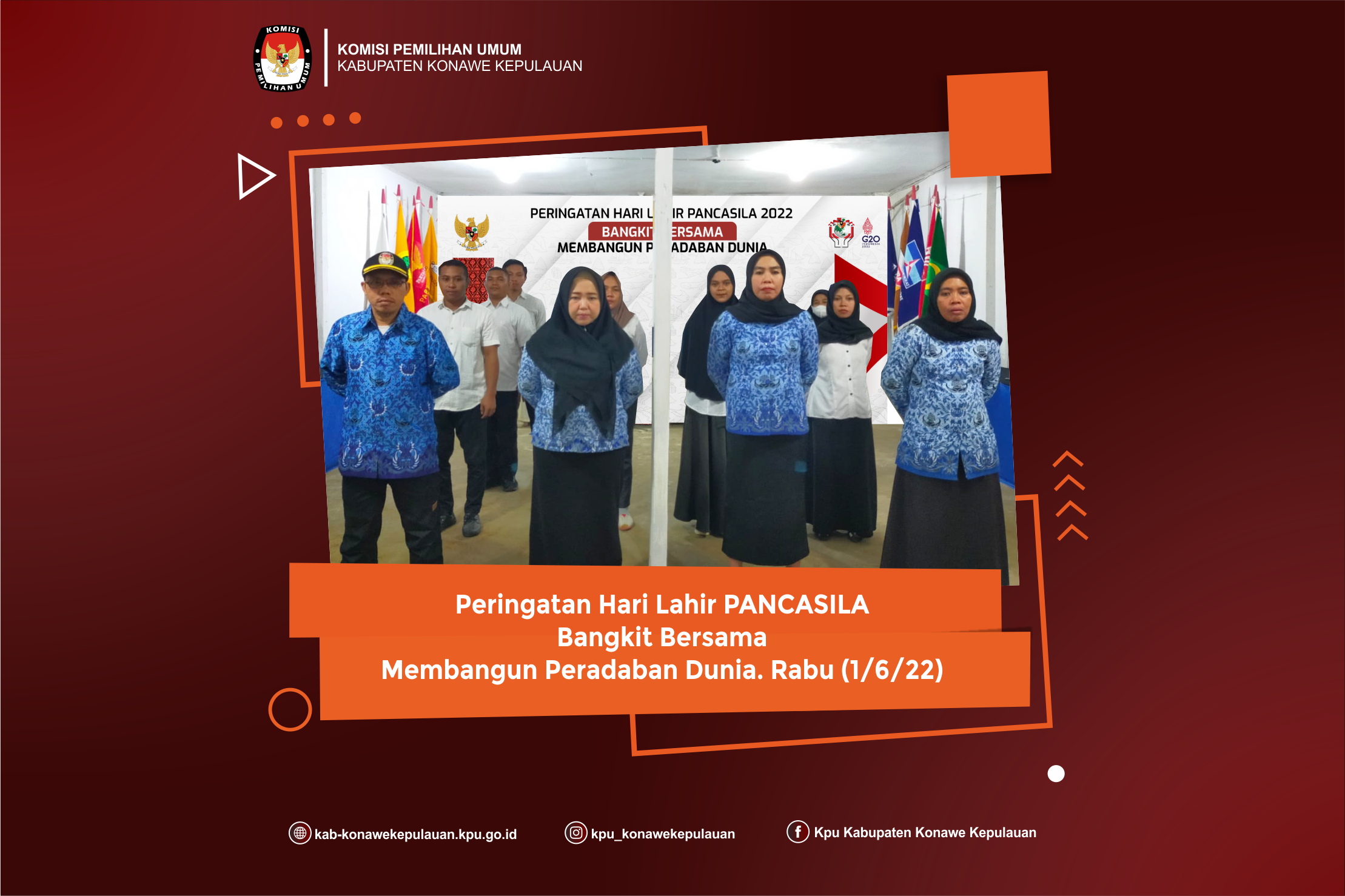 KonaweKepulauanKPU-Komisi Pemilihan Umum Kabupaten Konawe Kepulauan Mengikuti Rangkaian Upacara Peringatan Hari Lahir Pancasila Melalui daring [1/6/22]