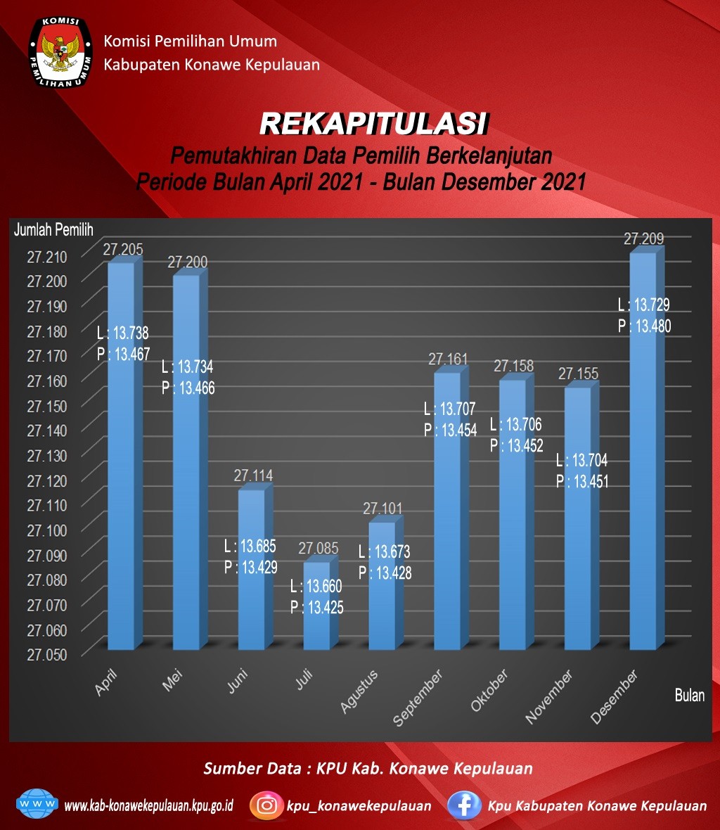 Berikut Hasil REKAPITULASI Pemutakhiran Data Pemilih Berkelanjutan Periode April - Desember 2021